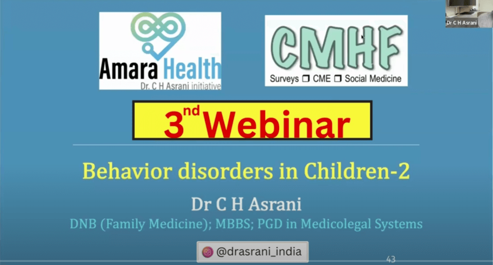 sodainmind February 28, 2025 No Comments Webinar 139 – Behavior Disorders in Children – 2 by Dr C H Asrani