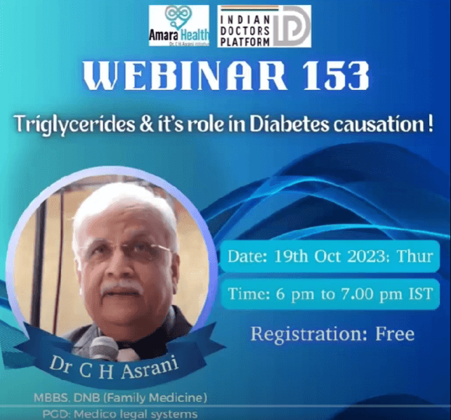 sodainmind February 27, 2025 No Comments Webinar 153 – Triglycerides & its role in Diabetes causation by Dr C H Asrani