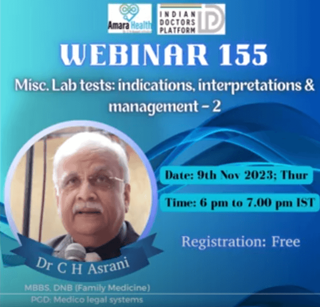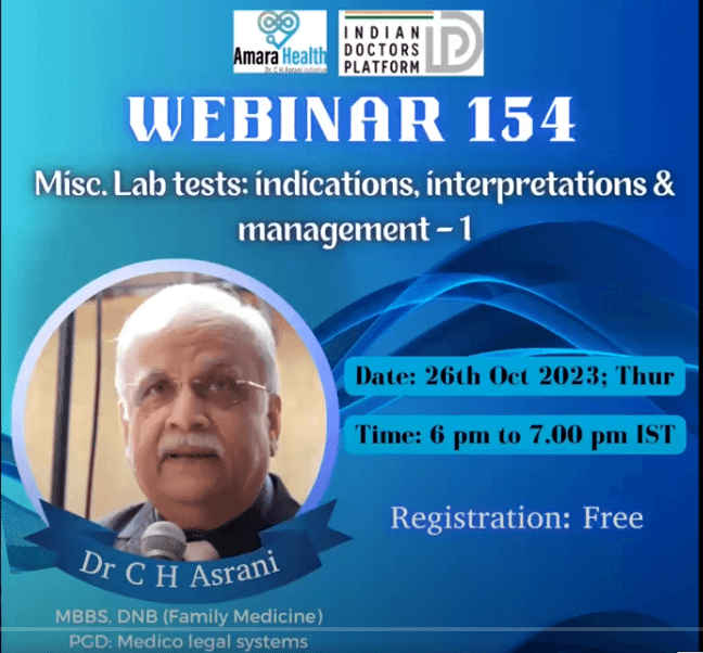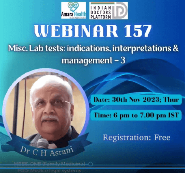sodainmind February 27, 2025 No Comments Webinar 155 – Misc. Lab tests: indications, interpretations & management – 2 by Dr C H Asrani