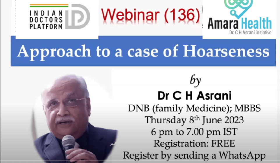sodainmind February 27, 2025 No Comments Webinar 136 – Approach to a case of Hoarseness by Dr C H Asrani
