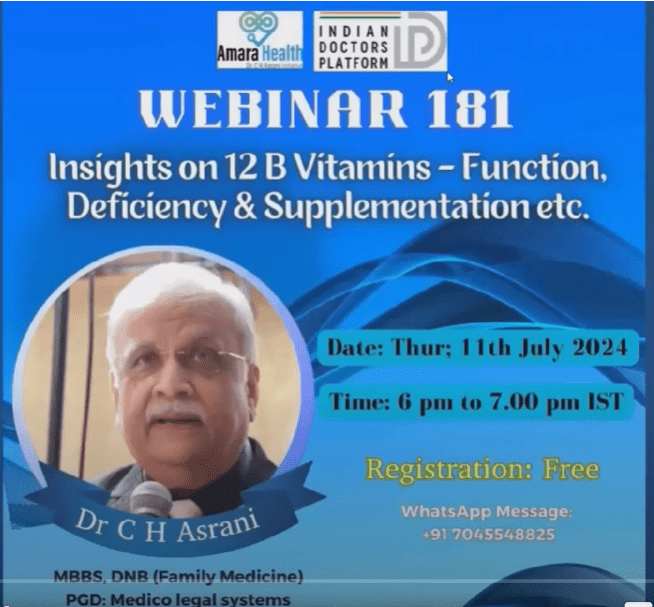sodainmind February 27, 2025 No Comments Webinar 181 – Insights on 12B Vitamins – Function, Deficiency & Supplementation etc by Dr C H Asrani