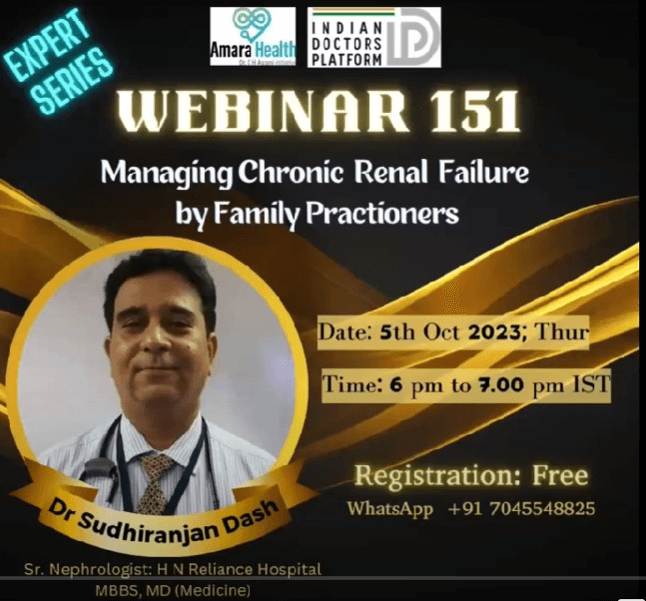 sodainmind February 27, 2025 No Comments Webinar 151 – Managing Chronic Renal Failure by Family Practitioners by Dr Sudhiranjan Dash