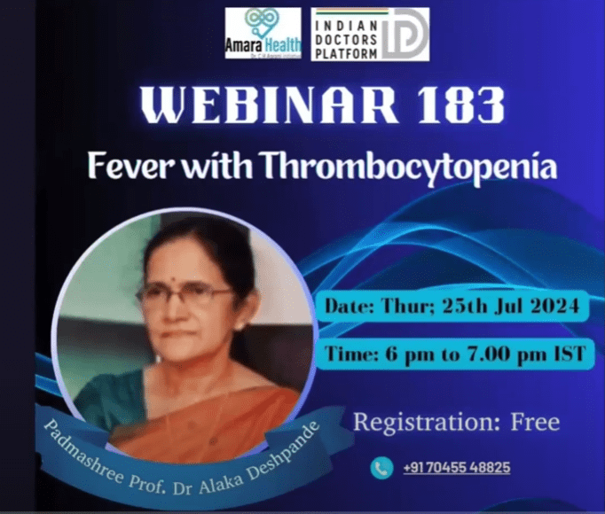 sodainmind February 27, 2025 No Comments Webinar 183 – Fever with Thrombocytopenia, by Padmashree Prof. Dr Alaka Deshpande